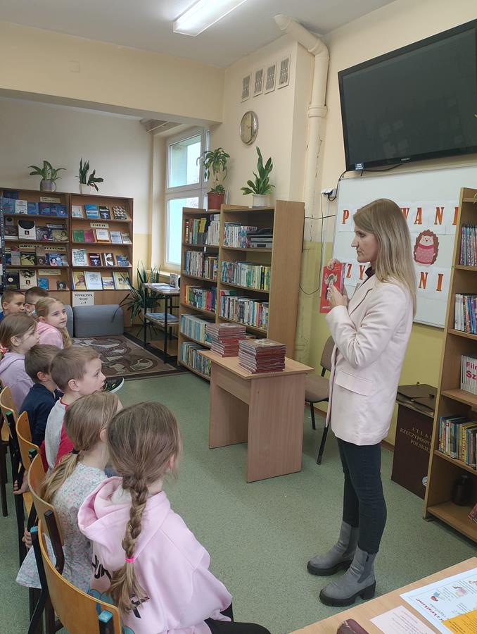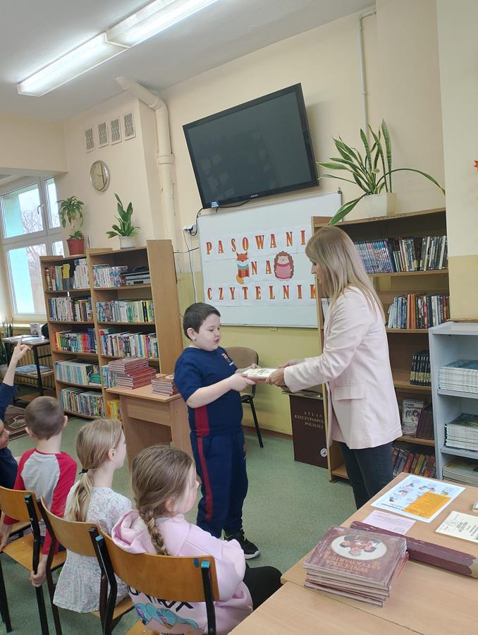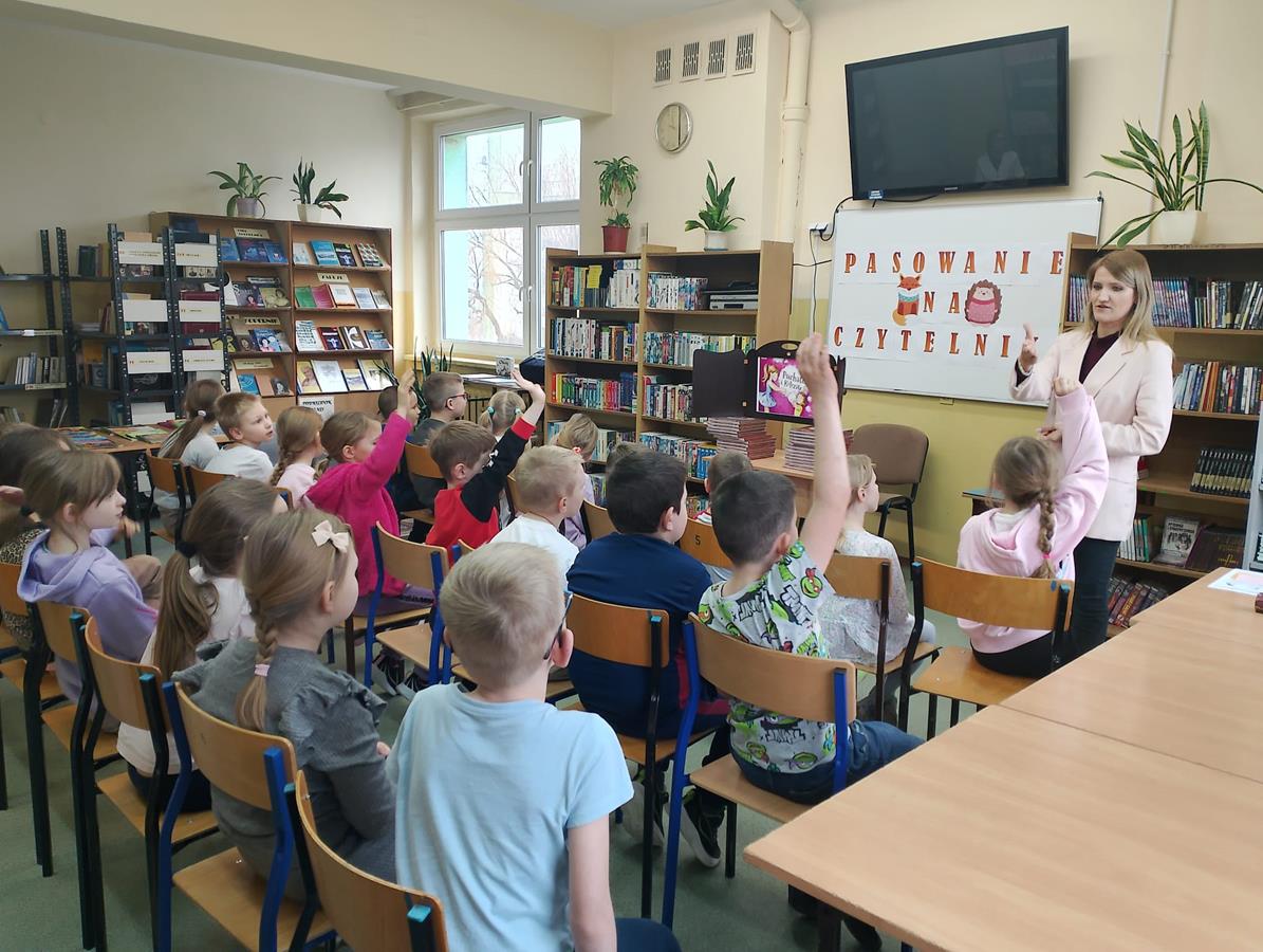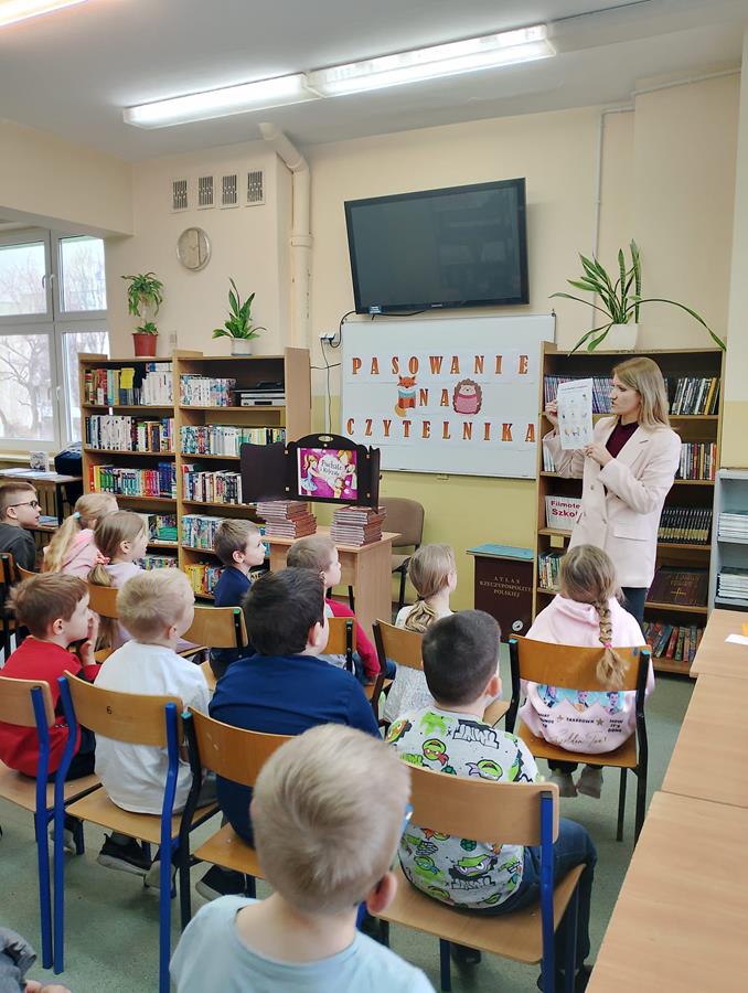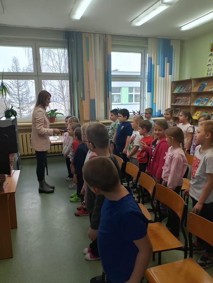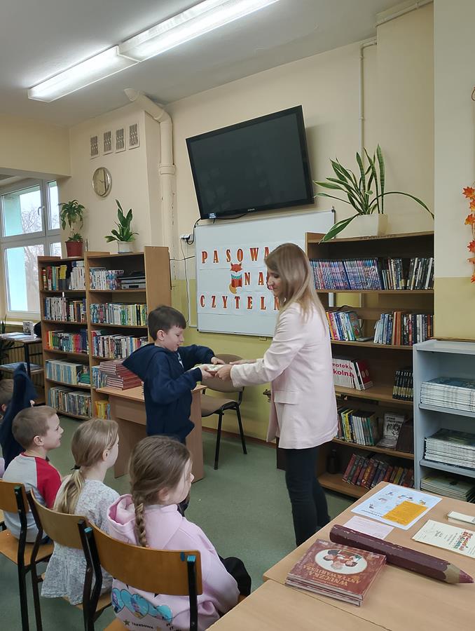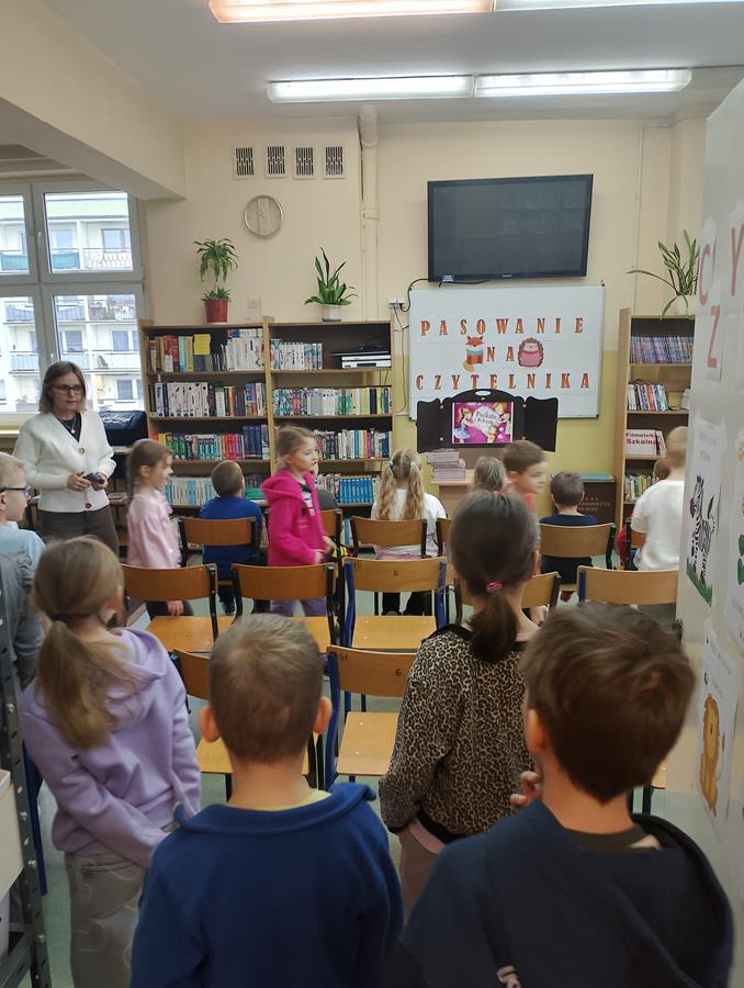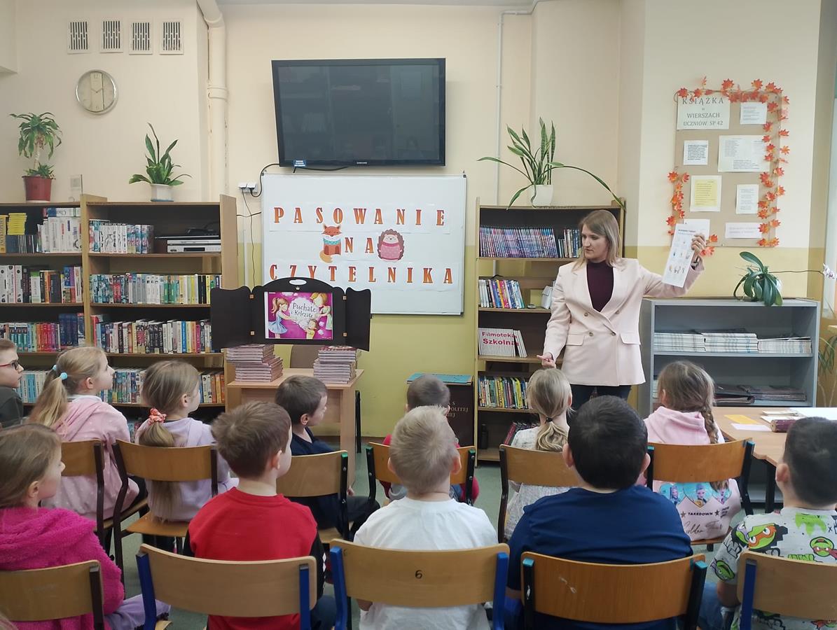 4, 5 i 6 lutego to szczególny czas dla pierwszoklasistów – zostają przyjęci w poczet czytelników. Bibliotekarka, pani Marta Drążkowska, zaznajomiła uczniów z zasadami obowiązującymi w bibliotece i czytelni oraz omówiła regulamin dotyczący wypożyczania książek. Następnie najmłodsi członkowie społeczności SP42 obejrzeli przedstawienie Teatrzyku Kamishibai pt. „Puchate i Kolczate”, po którym złożyli uroczyste przyrzeczenie i zostali pasowani na czytelników. Na pamiątkę tego wydarzenia otrzymali dyplom, książkę Justyny Bednarek pt. „Wnuczka antykwariusza” oraz zakładkę do niej. Od tej pory bogate zbiory naszej szkolnej biblioteki stoją dla pierwszaków otworem.