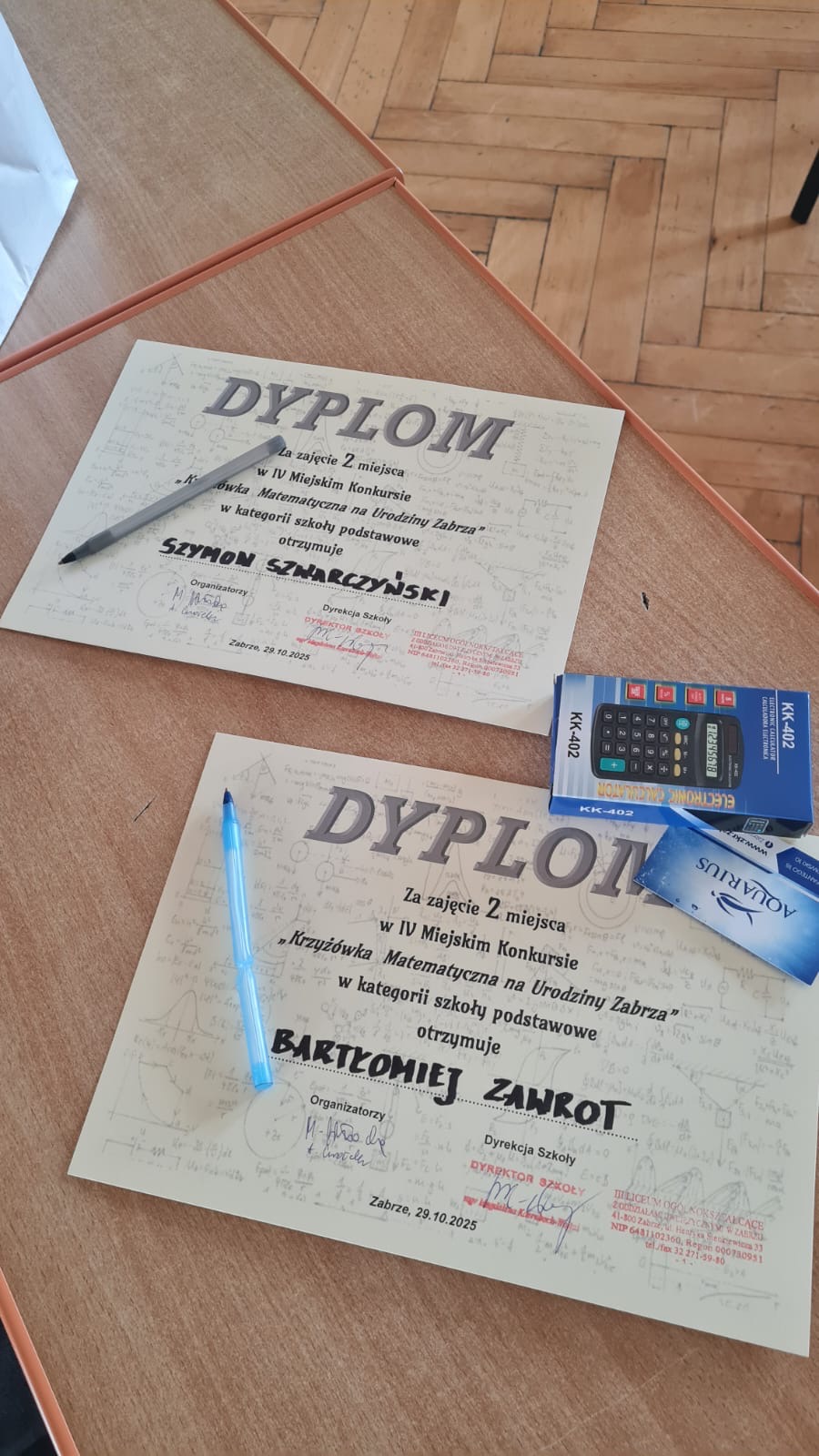 Już po raz czwarty w III Liceum Ogólnokształcące z Oddziałami Dwujęzycznymi odbył się Konkurs Miejski dla uczniów szkół podstawowych i ponadpodstawowych – Krzyżówka Matematyczna na Urodziny Zabrza. W tym roku w rywalizacji wzięło udział 13 drużyn (10 podstawówek i 3 szkoły średnie). W konkursie drużyny dwuosobowe rozwiązują działania arytmetyczne (pisemnie i w pamięci), a ich wyniki są hasłami w krzyżówce i równocześnie datami historycznymi oraz liczbami związanymi z dziejami miasta. Naszą szkołę reprezentowali uczniowie klasy 8b Szymon Szwarczyński oraz Bartłomiej Zawrot, którzy zajęli 2. miejsce. Gratulujemy!